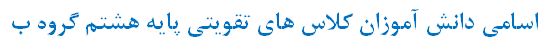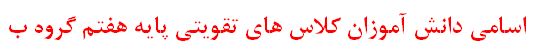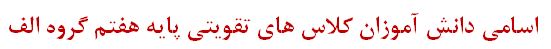 فایل های زیر اسامی دانش آموزان شرکت کننده در کلاس های تقویتی ( فوق برنامه ) بعدازظهرها می باشد جهت اطلاع از گروه بندی خود بر روی فایل مورد نظر کلیک کنید.