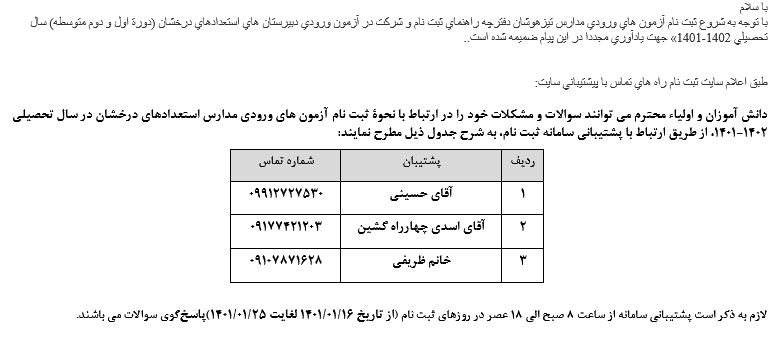 دفترچه راهنمای ثبت نام در آزمون استعدادهای درخشان